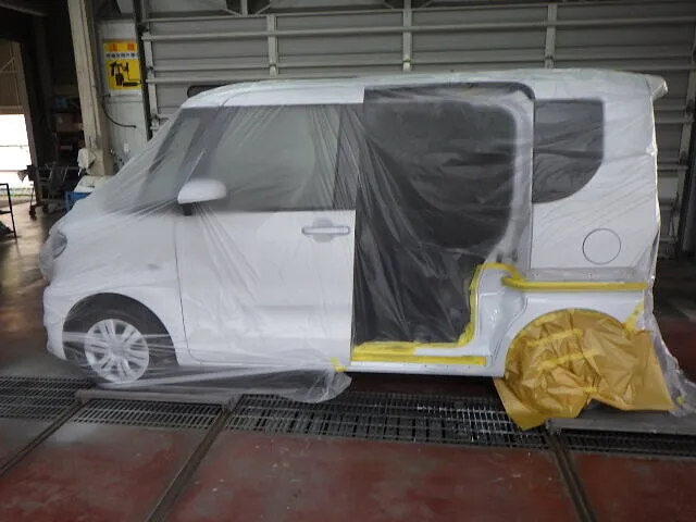 ★タント 左リヤ廻り板金塗装実例 スライドドア修理 トーションビーム交換 クオーター修理