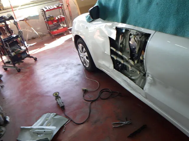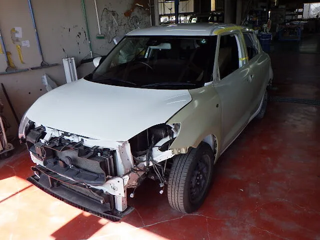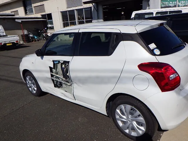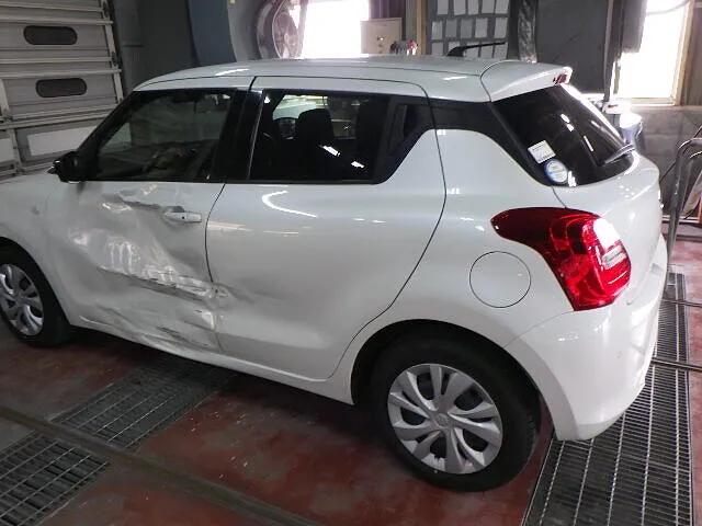 今回は助手席ドアに酷いダメージを負ったスズキスイフトの修理を行っていきます