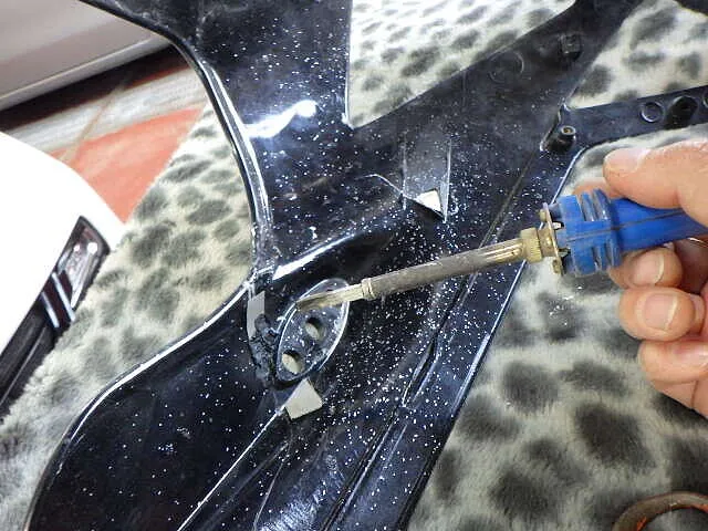 それと・・サイドカウルとの取り付けボルト穴も割れてたので・・修理が必要です
