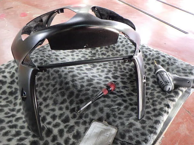 バイクカウルの塗装で必要なスキルは・・最高の固定方法を思い付く事です