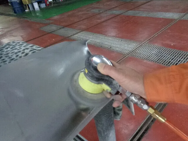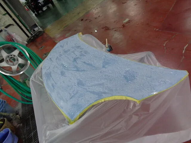 軽自動車の塗装は・・鉄板の上に下地塗装、青や赤