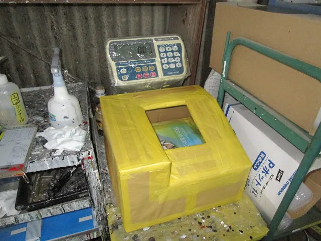 イサム塗料さん営業さんにヒントを得て調色はかりの風よけを作りました。
