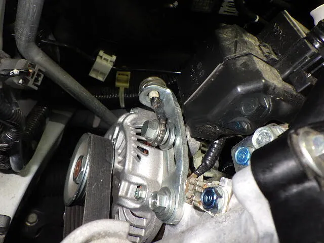 この狭い構造ならベルトを張るボルト有っても良さそうですが・・存在しません