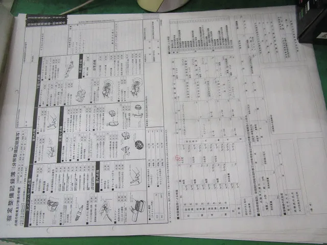 同時にタイヤやブレーキパッドの残量などの数値を書類に書いていきます。