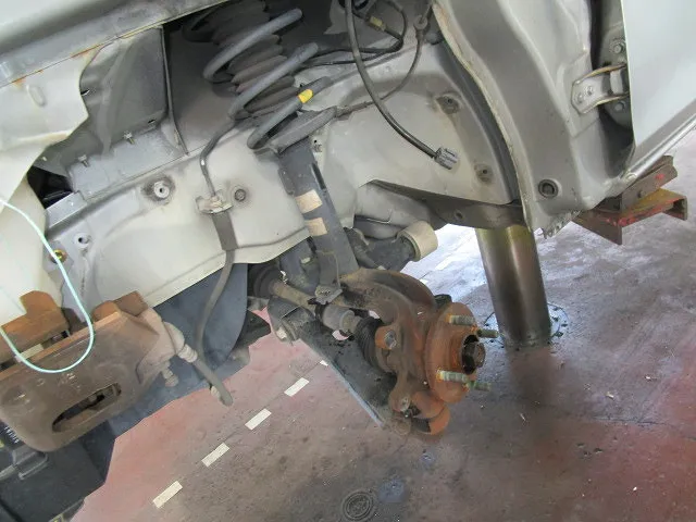 板金修正の途中で足廻りの交換を行います。