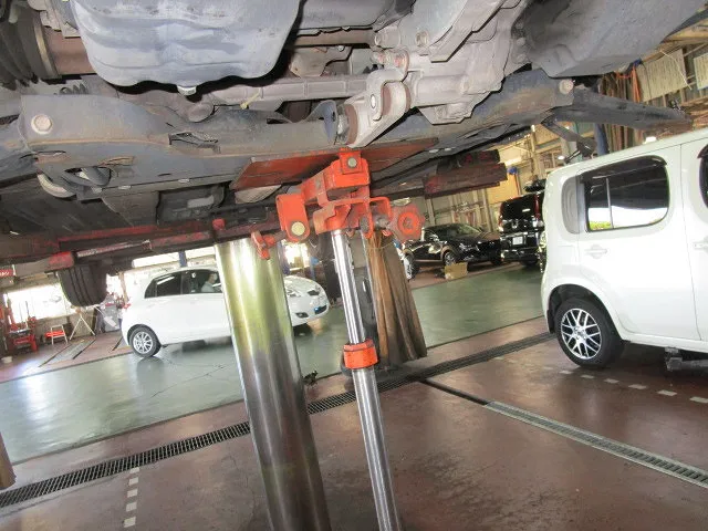リフトで車が持ち上がる前に作業するのが吉です。
