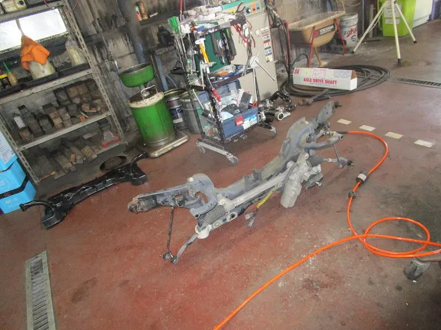この中で再使用は右側のロアアームとステアリングラック・スタビ位です。