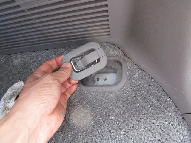 バックドアを開けると・・・両端の床に固定されてます。